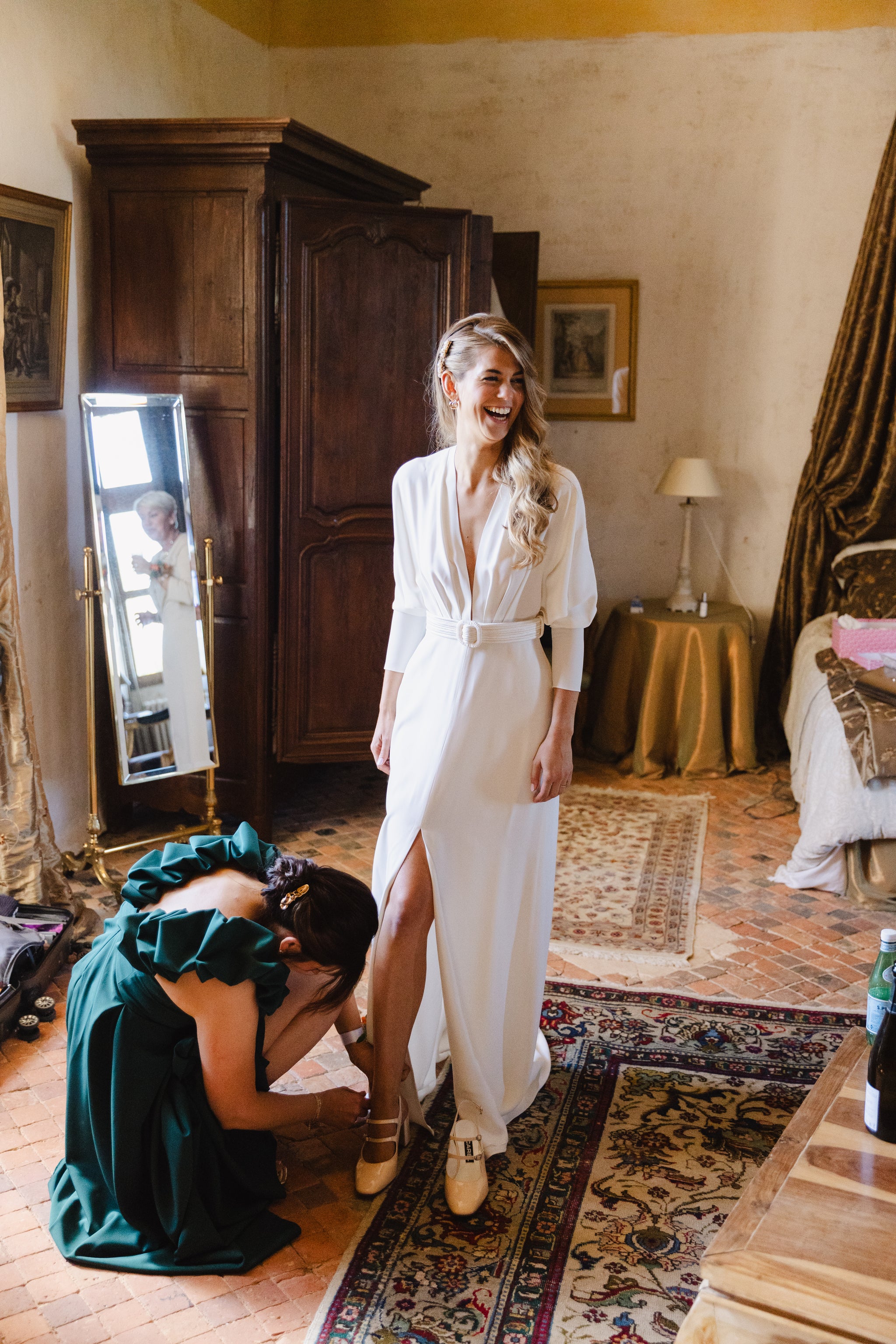 Coup de coeur pour UNI sur instagram qui s’est confirmé lors de mon 1er rdv après avoir découvert la collection et rencontré la topissime Sabrina. A partir de ce moment je savais qu’UNI serait mon choix pour le civil et le laïque. Pour le civil je voulais un pantalon. Pour le laïque je voulais une robe très épurée. J’ai trouvé exactement ce que je voulais chez UNI et surtout des accessoires de malade pour rendre mes tenues exceptionnelles. Les chaussures que j’avais choisi pour le civil étaient hors de prix et surtout très inconfortables, sur le chemin pour faire mon essai de tenue civile chez UNI je fais un saut chez HetM pour acheter une babiole et la incroyable mais vrai j’ai trouvé des chaussures confortables bon marché et hyper stylées. C’est une anecdote que je voulais partager car c’est ça aussi pour moi la mariée moderne, elle est ouverte à plein de propositions, mixe les marques nobles et plus abordables (Les autres chaussures ont été mises sur Vinted ;) ). Pour les chaussures du laïque : talons mais hyper conforts que j’ai gardé toute la journée et la soirée.