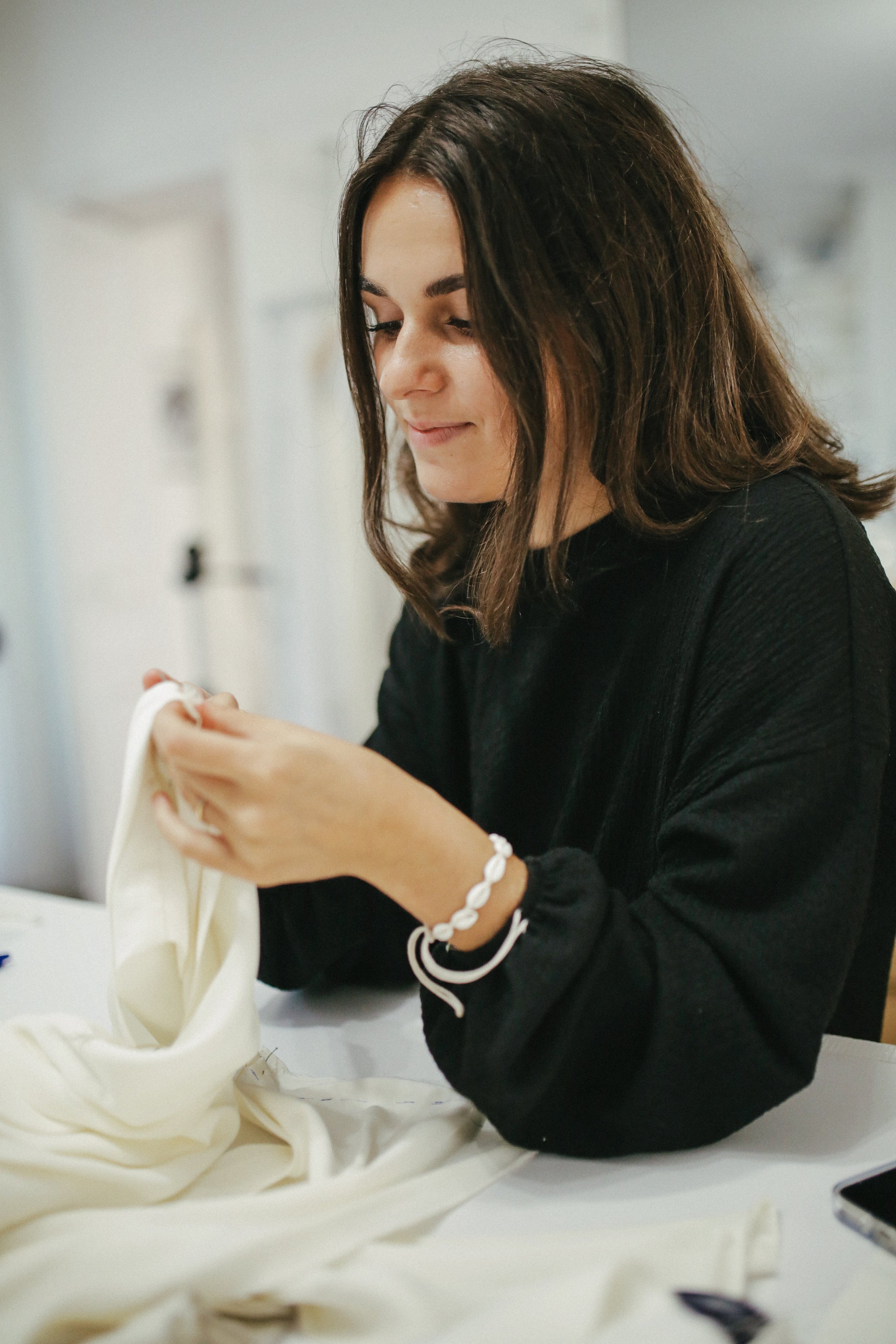 "Moi c'est Charlotte co-créatrice de Uni Paris. Modéliste de formation je fais des robes de mariées depuis plus de 10 ans. Aujourd'hui je chapeaute principalement toute la partie production de notre atelier et chez nos prestataires. La passion pour ce métier ne fait que grandir d'année en année et Uni m'apporte le lot de challenges dont j'ai besoin chaque saison. Je me sens très chanceuse de travailler dans ce domaine ou le partage et l'amour reste la motivation principale."