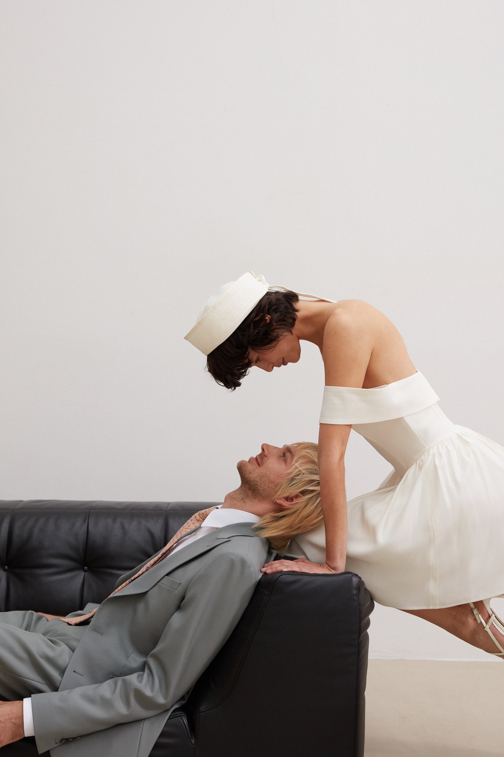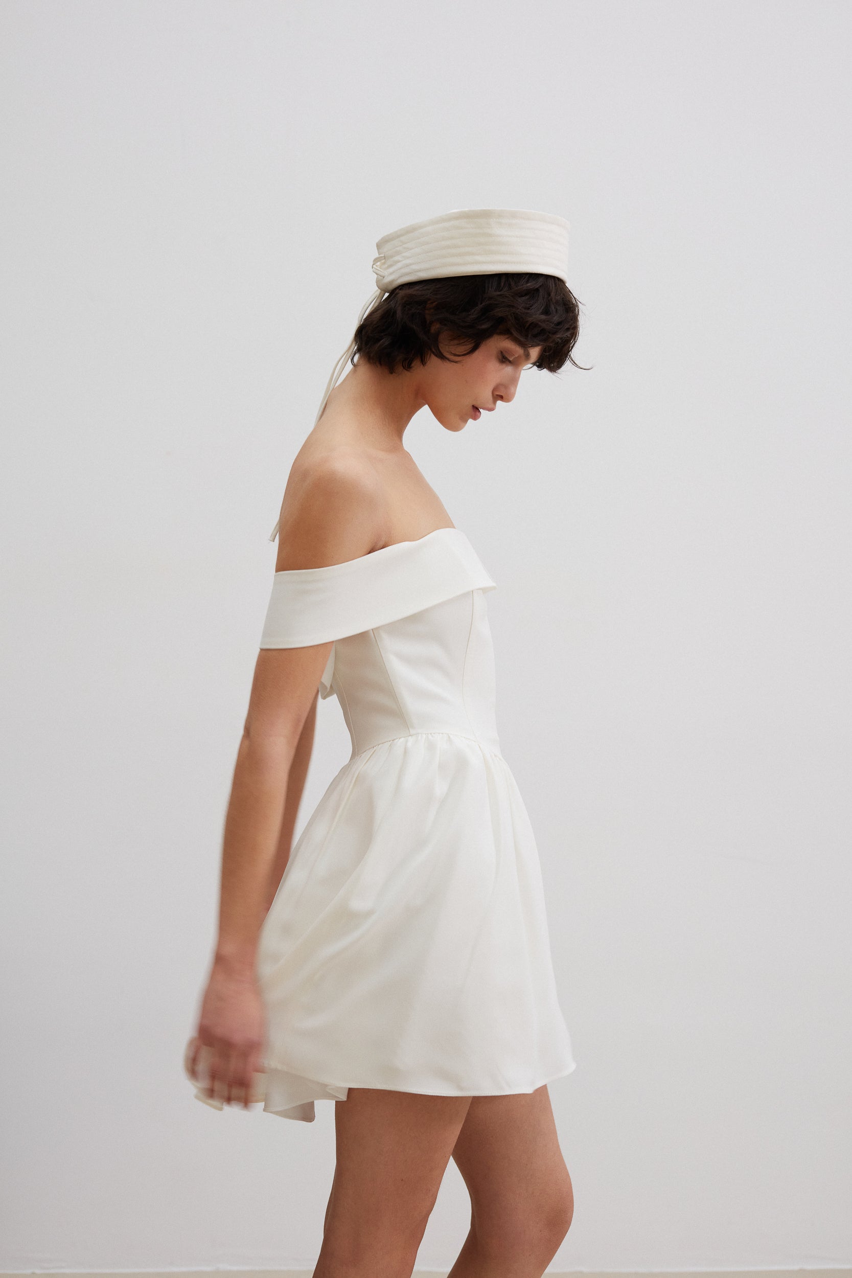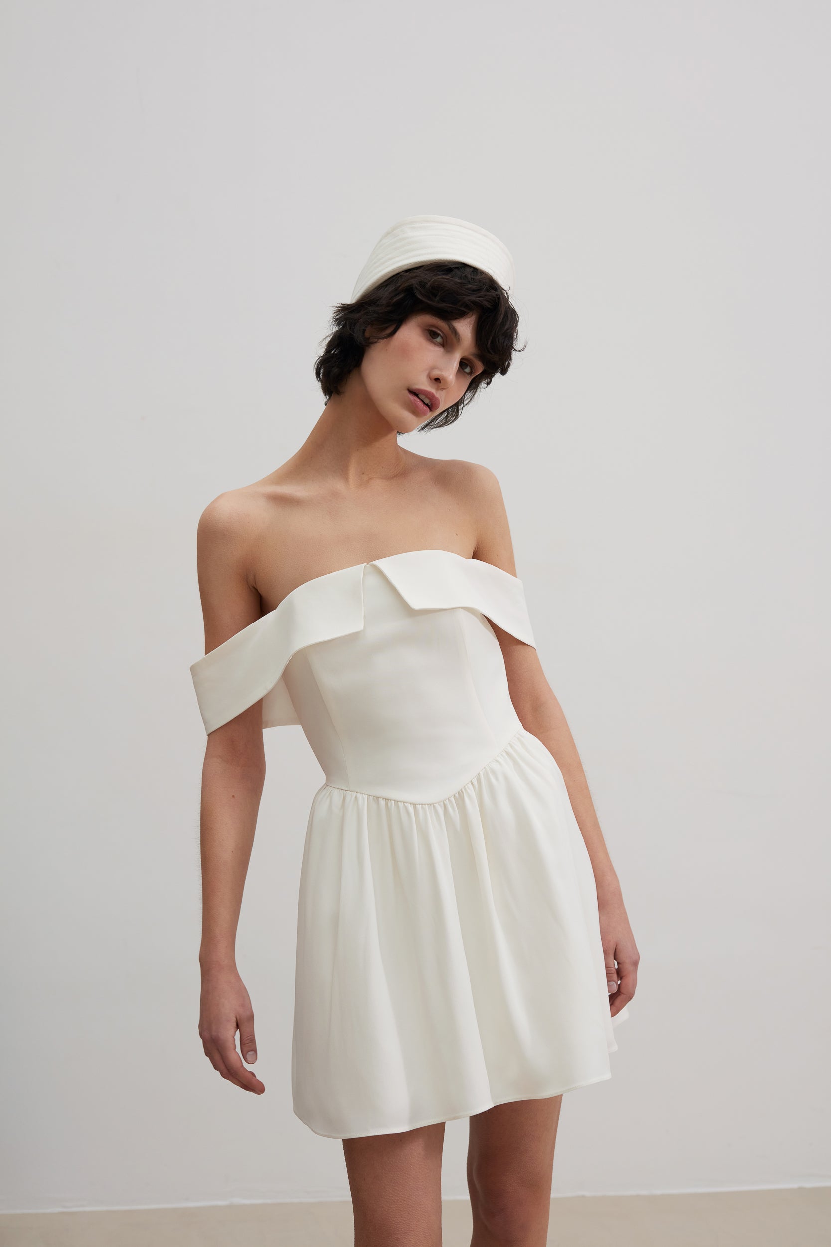 Robe courte, bustier, épaules nues avec bord replié en haut, effet corset, jupe plissée avec jupon en tulle, fermeture milieu-dos.