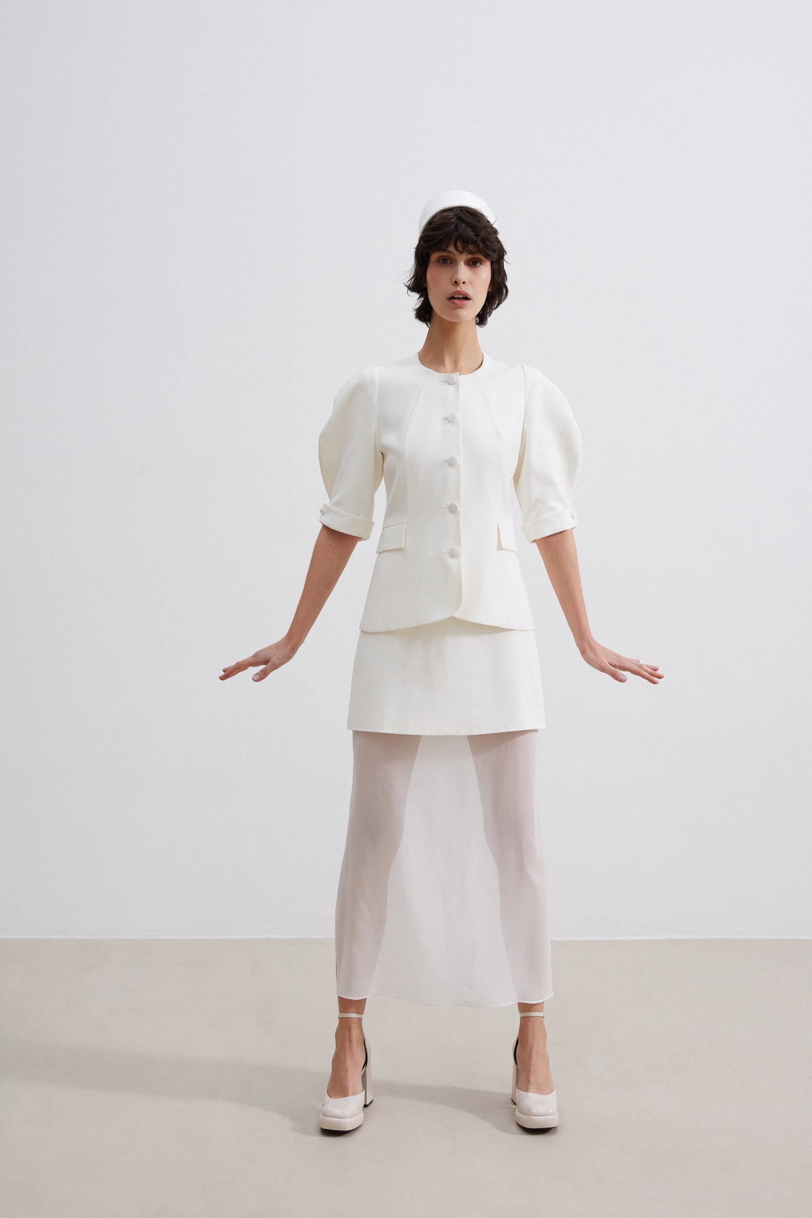 Sous-jupe fluide et transparente, longueur cheville, fente qui peut être placée sur les côtés ou milieu dos.