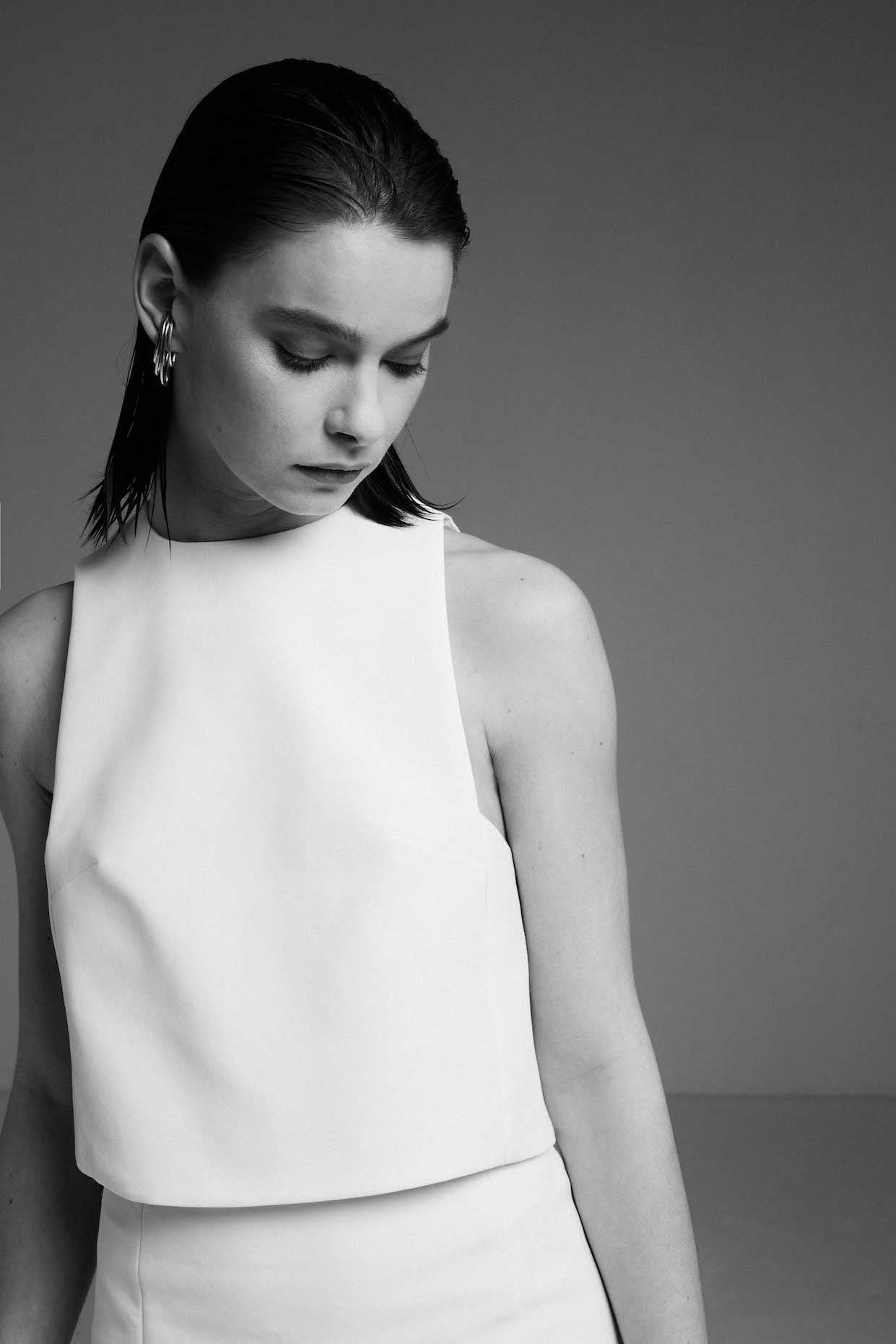 Crop Top rigide, découpe graphique à l'emmanchures.